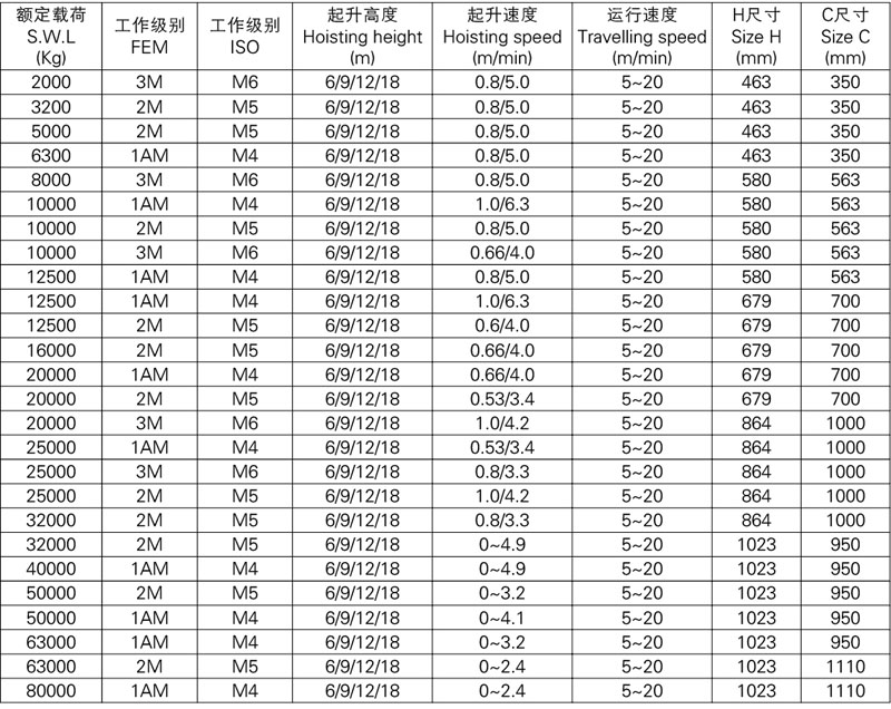 具有更快更多的起吊速度和多種滑輪倍率可供選擇。標準小車運行機構采用變頻器控制,速度達到20米/分,使小車行走時吊運物品擺動小、定位**,可安全地吊運精密貴重物品。